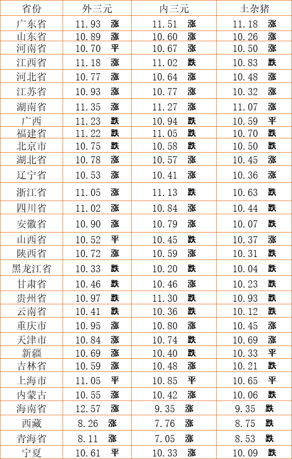 猪肉价格今日价(2022年8月22日) 备注:以上猪肉价格仅供参考,请以官方价格为准。(亚汇网编辑:陌尘)