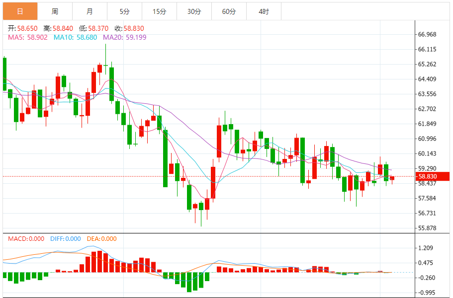 2025年12月3日晚间,国际原油市场在多空因素激烈拉扯下维持弱势震荡。截至发稿,WTI原油交投于58.8美元/桶,日内跌幅0.34%,盘中在58.5-59.2美元区间反复试探;国内原油主连合约报450.3元/桶,较日内高点回落0.86%,成交量放大至8231手,反映市场对晚间IA库存数据的谨慎预期。当前市场核心矛盾集中在“OC+减产托底