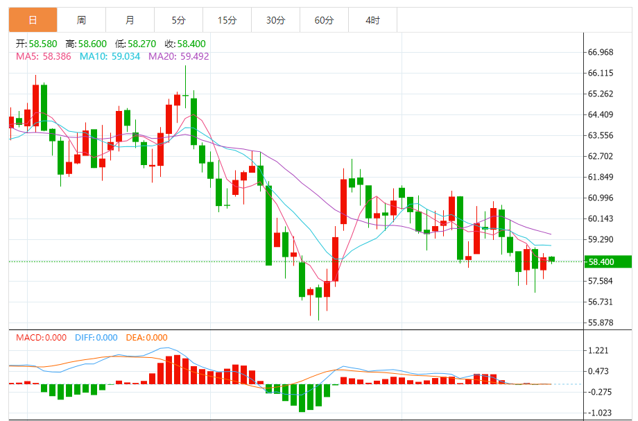 周四(11月27日),美原油价格交投于58.400美元/桶附近,跌幅为0.41%。 原油在最近的盘中交易中进一步巩固了涨势,利用相对强弱指标的积极信号,提供了额外的看涨动力。这次盘中上涨使得价格在短期内突破了小型的看跌趋势线,被视为一个关键的技术突破,缓解了之前的压力,并为更大范围的看涨尝试铺平了