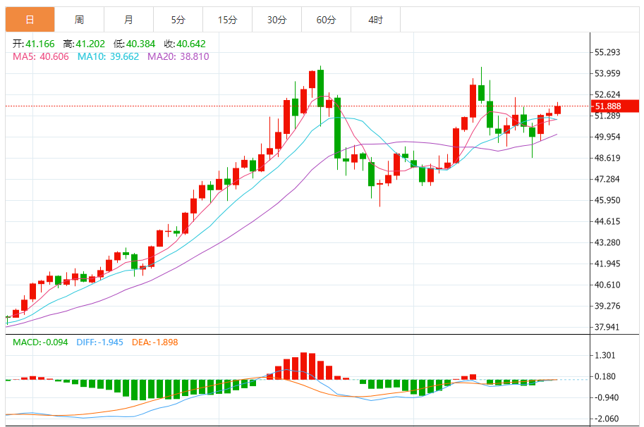 周三(11月26日),现货白银目前位于51.892美元/盎司附近,涨幅为0.85%。 白银价格在最后一个交易日上涨,原因是其在A50上方交易的积极压力仍在继续,此前卸载了其超买条件,为未来一段时间内实现更多收益开辟了道路,准备攻击52.35的关键阻力,A50的积极支撑仍在继续,短期主要看涨趋势占主导地位