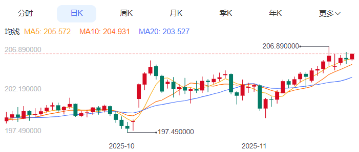 周三,欧元/日元上涨0.36%至181.071附近。 欧元方面,在货币政策维持稳定的背景下,欧元区经济呈现"弱复苏"特征。欧央行在会议声明中指出,尽管面临全球贸易摩擦和地缘政治紧张的挑战,但欧元区经济仍在继续增长。不过,11月公布的欧元区I初值释放了混合信号,制造业I仍处于44.8的收缩区间,连续12