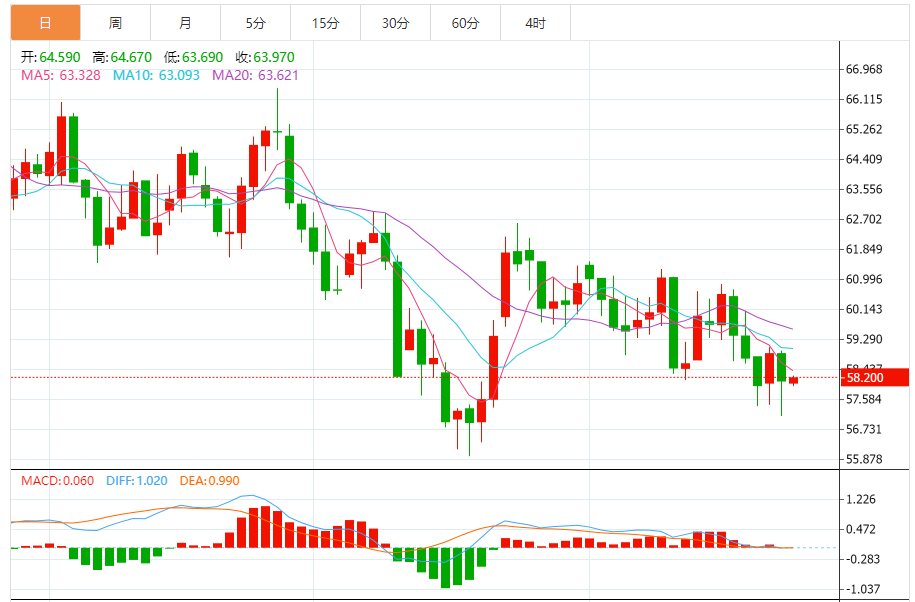 2025年11月26日晚间,国际原油市场延续“弱反弹、强压制”的格局,多空围绕供需数据与政策预期反复拉锯。截至21:30,WTI原油短线冲高至58.6美元/桶后快速回落,现报58.1美元/桶,日内跌幅0.34%;布伦特原油同步震荡于62.1美元/桶,较日内高点回落0.4美元,涨幅收窄至0.16%。国内C原油期货主力合约跟随波动,夜盘开盘