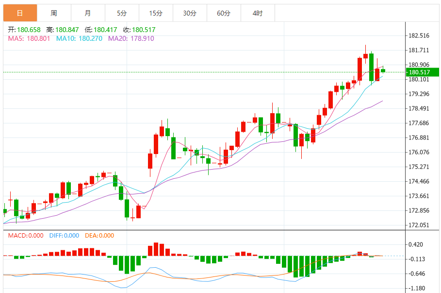 周二,欧元/日元下跌0.10%至180.529附近。 欧元方面,欧洲央行管理委员会成员Joachiagl表示,欧洲央行必须继续关注疫情后通胀飙升的后续影响,包括食品价格上涨和服务成本居高不下等问题。这位德国央行行长周一在法兰克福讨论会的准备发言中指出,尽管价格涨幅目前徘徊在2%的目标水平附近,且中期内