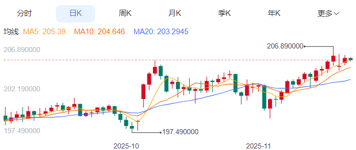 周二,英镑/日元下跌0.11%至205.41附近。 英镑方面,英国贸易大臣彼得·凯尔周一表示,他计划在圣诞节前访问华盛顿,以推动英国与美国在医药和钢铁等领域的贸易谈判进展。英国已于今年五月成为首个获得美国总统特朗普部分关税豁免的国家,但协议中关于将英国钢铁关税降至零以及医药领域合作的内容尚未最