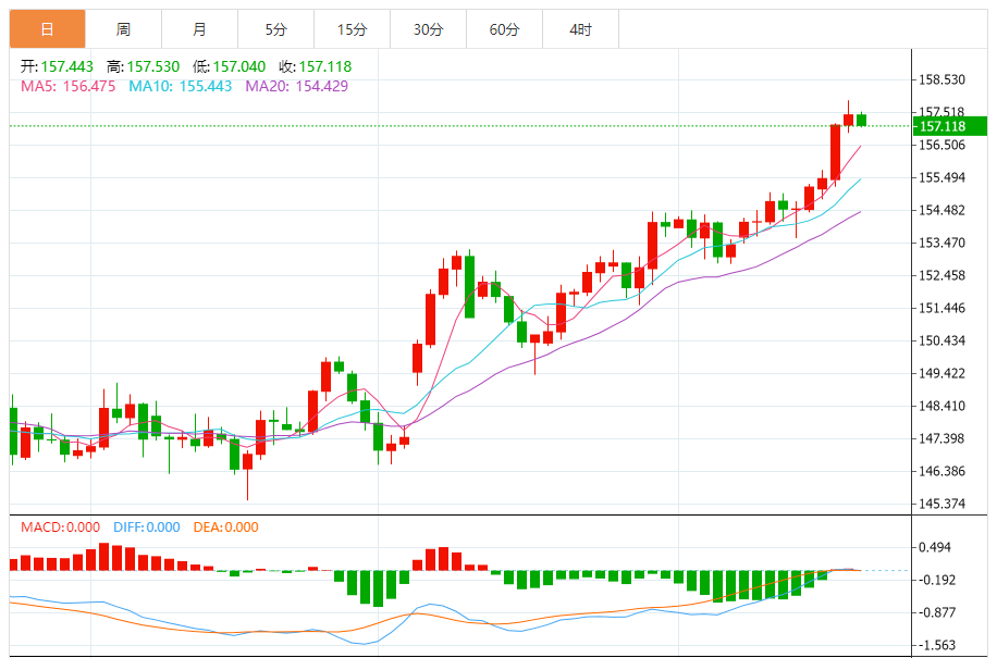 周五(11月21日),美元/日元上涨157.136,暂报157.108,跌幅0.21%。 市场基本面分析 日本10月核心通胀率以自7月以来最快速度攀升,这为日本央行加息提供了依据。由于市场担忧日本当局可能干预汇市,加之避险需求回升,日元停止了近期的下跌走势。 日本通胀持续升温,10月核