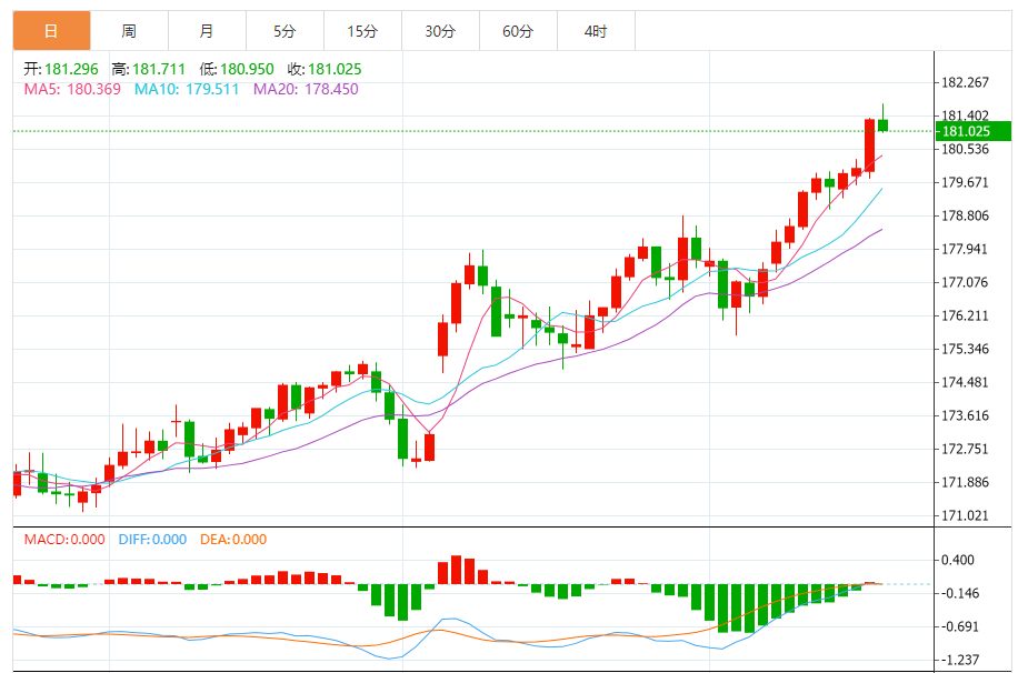 周四,欧元/日元下跌0.14%至181.049附近。 欧元方面,欧洲央行在最新预测报告中上调了经济增长预期,并对通胀前景保持乐观,这成为利率维稳的核心依据。通胀方面,当前欧元区通胀水平已接近2%的中期目标,拉加德在9月的新闻发布会上明确表示“去通胀过程已结束”。具体预测数据显示,2025年整体通胀率预