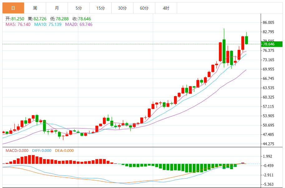 周三(1月7日),现货白银目前位于78.708美元/盎司附近,跌幅为3.09%。 白银价格在其最后一个盘中水平上波动交易,以收集其先前上涨的收益,试图卸载其在相对强度指标上的一些明显超买条件,特别是随着负面信号的出现,以收集其积极的力量,这可能有助于其在短期内恢复其收益,因为其在A50上方交易的