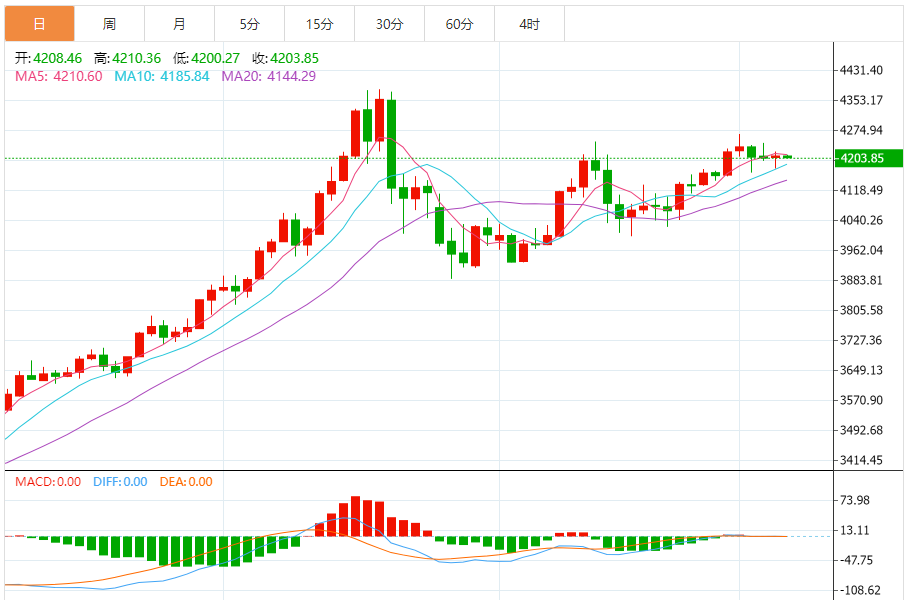 周五(12月5日),现货黄金目前位于4228.01美元/盎司附近,涨幅为0.46%。 黄金在最近的盘中交易中在有限的修正范围内下跌,因为黄金不断试图获得可能有助于其恢复和再次上涨的看涨势头,利用了因其在A50上方交易而产生的动态支撑,以及短期主要看涨趋势的主导地位和沿该趋势的支撑趋势线交易。