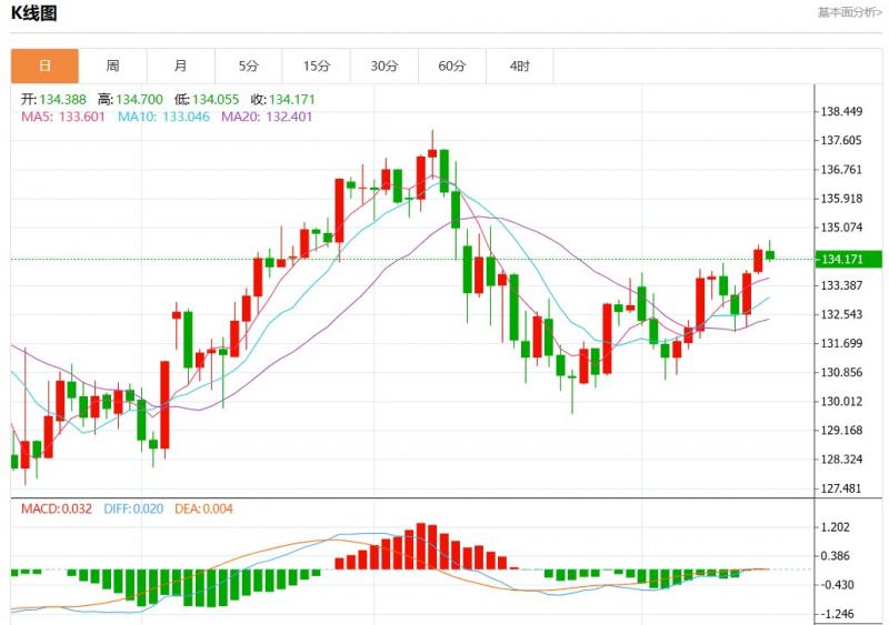 今日周二,美元兑日元报133.978,涨幅0.19%。 今日分析:在134.70之下,看跌,目标价位为133.75,然后为133.50。 备选策略:在134.70上,看涨,目标价位定在135.00,然后为135.30。 技术点评:RI技术指标向下运行。 支撑位:135.30135.00134.70