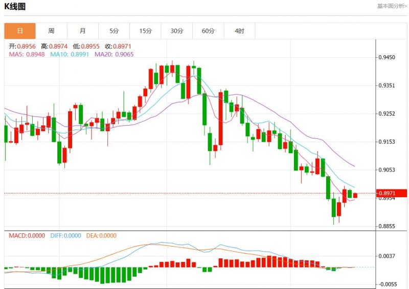 周三盘中,美元瑞郎报0.8970,涨幅0.17%。 今日分析:在0.8980之下,看跌,目标价位为0.8955,然后为0.8940。 备选策略:在0.8980上,看涨,目标价位定在0.8995,然后为0.9010。 技术点评:只要0.8980阻力位不被突破,向下跌破0.8955位置的风险很高。 支撑位:0