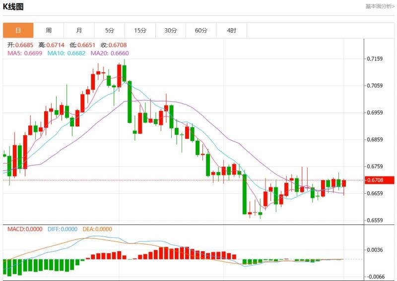 周一盘中,澳元美元报0.6709,涨幅0.35%。 今日分析:在0.6655之上,看涨,目标价位为0.6715,然后为0.6735。 备选策略:在0.6655下,看空,目标价位定在0.6645,然后为0.6630。 技术点评:RI技术指标向上运行。 支撑位:0.67550.67350.6715 阻力