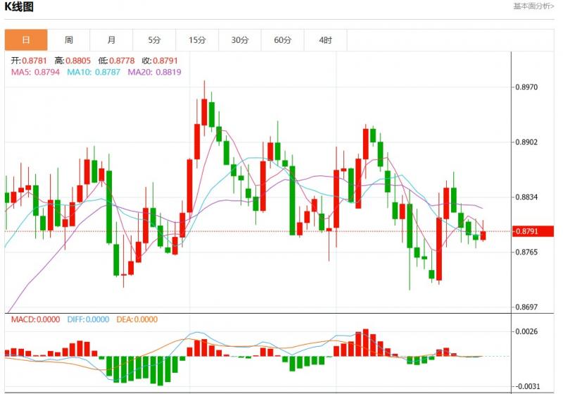 欧元兑英镑报0.8791,涨幅0.07% 交易策略:看跌,当0.8810为阻力位。 备选策略:向上突破0.8810,将带来继续上行的趋势,目标位定在0.8835和0.8850。 技术点评:RI技术指标小于中性区域50。ACD技术指标呈现看多状态并处在其信号线的下方。此外,价位低于其20天及50天移动平