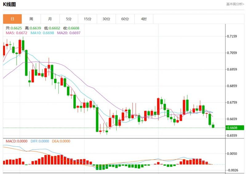 周三盘中,澳元美元报0.6608,跌幅0.28%。 今日分析:在0.6800之下,看跌,目标价位为0.6560,然后为0.6420。 备选策略:在0.6800上,看涨,目标价位定在0.6920,然后为0.7030。 技术点评:RI技术指标向下运行。 支撑位:0.70300.69200.6800 阻力