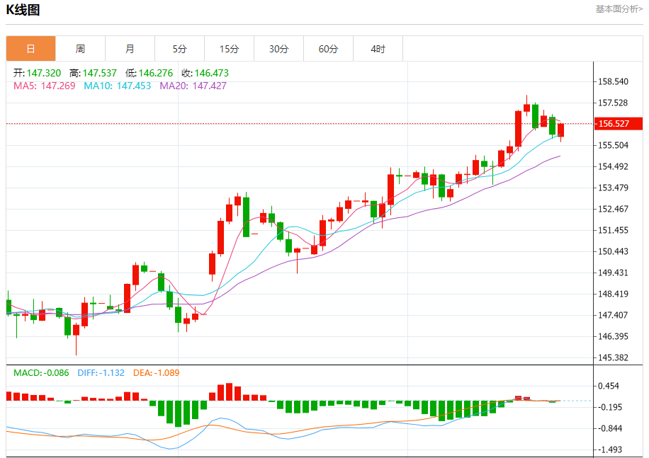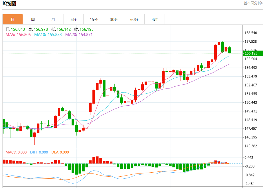 今日周三,欧元兑美元报1.1578,涨幅0.07%;英镑兑美元报1.3156,跌幅0.08%;美元兑日元报156.485,涨幅0.28%。 欧元兑美元汇率分析 技术点评:其即时趋势维持向上,但缺乏动能。 阻力位:1.16201.16051.1595 支撑位:1.15501.15401.1525