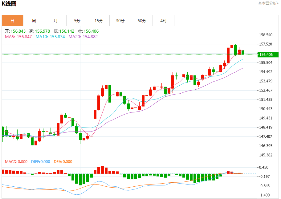 周二盘中,美元/日元报156.361,跌幅0.32%。 今日分析:在156.85之下,看跌,目标价位为156.00,然后为155.65。 技术点评:即使我们不能排除持续技术反弹的可能性,其时间长度上,应该是有限的。 支撑位:156.00155.65155.25 阻力位:157.45157.15156.85