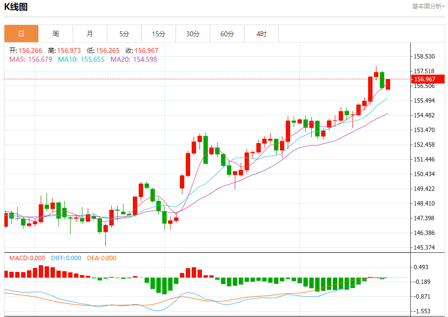 周一盘中,美元/日元报156.795,涨幅0.28%。 今日分析:在157.15之下,看跌,目标价位为156.00,然后为155.65。 技术点评:超短线(当日内)技术指标运行趋势复杂,应谨慎操作。 支撑位:156.00155.65155.30 阻力位:157.85157.50157.15 (亚汇网