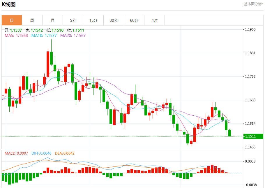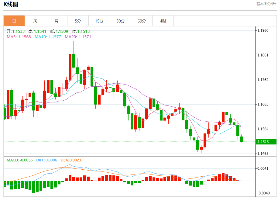 今日周四,截止目前欧元兑美元报1.1514,下跌0.20%。 欧元基本面分析 欧洲央行管委Garilakhlouf接受路透采访时表示,对当前的政策立场感到满意,并警告不要对可能出现的通胀低于目标反应过度。 这位爱尔兰央行行长称目前的利率设定处于“良好状态”,并表示他“需要看到非