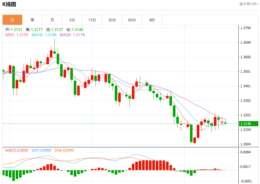 周二盘中,英镑/美元报1.3147,跌幅0.05%。 今日分析:看跌,在1.3188之下。 技术点评:RI技术指标小于中性区域50。ACD技术指标处在其信号线之下看空。配置为负。此外,价位低于其20天及50天移动平均线(分别位于1.3170和1.3163)。最后,价位跌破其布林线通道下轨(位于1.3150。
