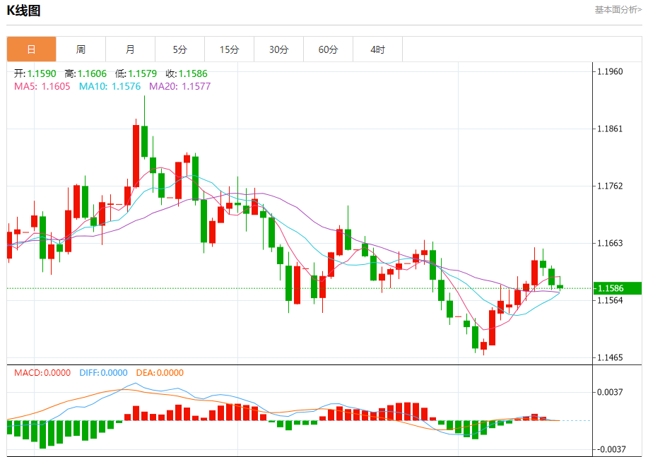 今日周二,欧元兑美元报1.1586,跌幅0.05%;英镑兑美元报1.3148,跌幅0.04%;美元兑日元报155.346,涨幅0.06%。 欧元兑美元汇率分析 技术点评:RI技术指标小于中性区域50。ACD技术指标处在其信号线之下看空。配置为负。此外,价位低于其20天及50天移动平均线(分别位于1.1595和1.1604)
