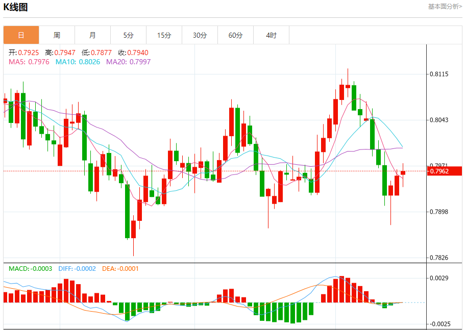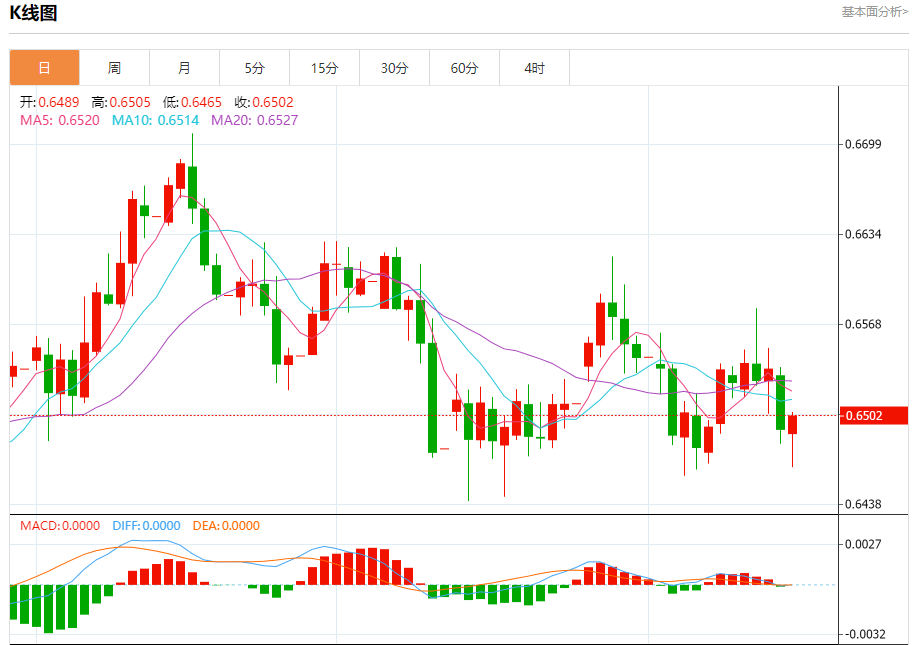 今日周二,澳元兑美元报0.6502,涨幅0.16%;美元兑加元报1.4027,跌幅0.19%;美元兑瑞郎报0.7966,涨幅0.07%。 澳元兑美元汇率分析 技术点评:RI技术指标小于30。在这种情况下,说明有很强的下跌趋势,或者意味着处在超卖的状态下,可能会有向上的反弹。我们将观察RI技术指标是否出现背