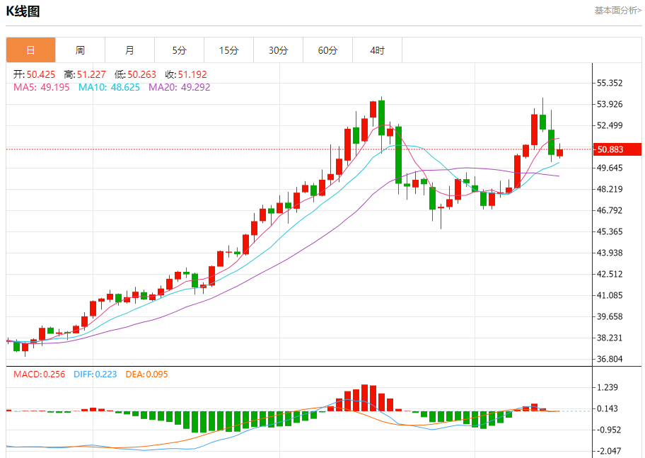 周一盘中,现货白银报50.891,涨幅0.65%。 今日分析:在51.50之下,看跌,目标价位为50.20,然后为49.35。 技术点评:超短线(当日内)技术指标运行趋势复杂。 支撑位:50.2049.3548.50 阻力位:53.0052.2051.50 (亚汇网编辑:冰凡)