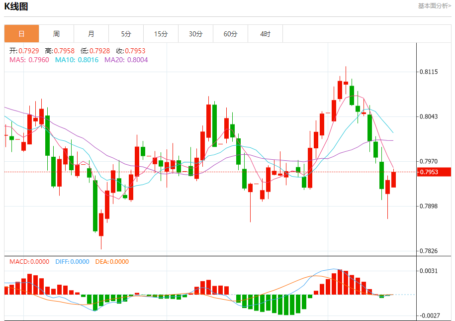今日周一,澳元兑美元报0.6522,跌幅0.22%;美元兑加元报1.4025,涨幅0.03%;美元兑瑞郎报0.7951,涨幅0.14%。 澳元兑美元汇率分析 技术点评:跌破0.6505位置,将会引发下跌至0.6485。 阻力位:0.65800.65600.6540 支撑位:0.65050.64850.6470 美