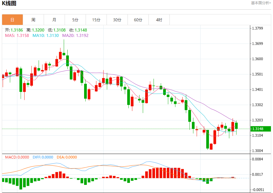 周五盘中,英镑/美元报1.3169,跌幅0.14%。 今日分析:在1.3180之下,看跌,目标价位为1.3105,然后为1.3080。 技术点评:投资者应保持谨慎操作,由于这些支撑或阻力位可能引发套现。 支撑位:1.31051.30801.3060 阻力位:1.32251.32001.3180 (亚