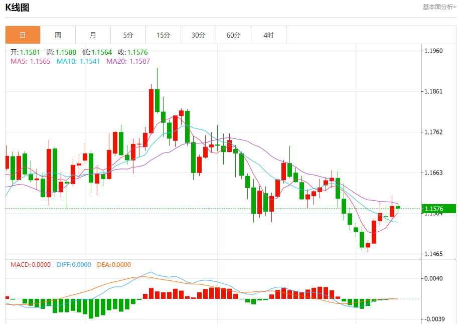 周三晚间,美元指数现报99.561,涨幅0.08%,现对美元兑欧元、英镑、日元主要货币对分析表述如下: 欧元/美元 汇价高见1.1588,低见1.1564。上一交易日,汇价收于1.1582。 日内建议:可以在1.1610---1.1550的区间上限卖出,有效破位30个点止损,目标在区间的下限。