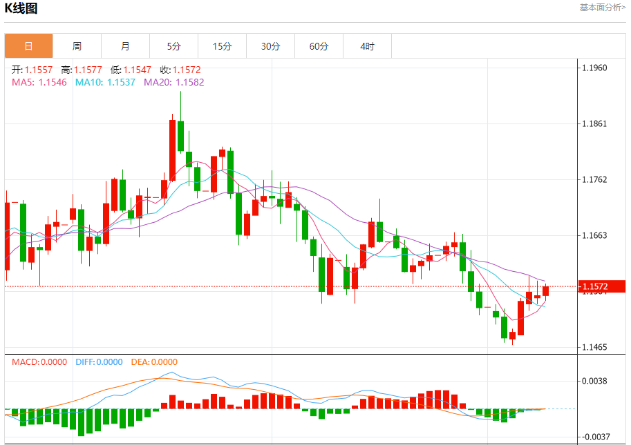 周二晚间,美元指数现报99.554,跌幅0.08%,现对美元兑欧元、英镑、日元主要货币对分析表述如下: 欧元/美元 汇价高见1.1577,低见1.1546。上一交易日,汇价收于1.1556。 基本面:根据贝莱德集团的说法,在基础设施的快速增长和投资者对欧洲大陆情绪有利转变的推动下,欧洲私