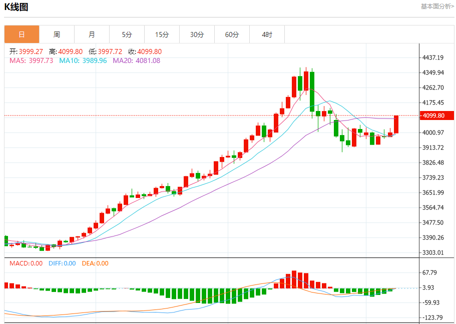 黄金:强势上涨态势延续,警惕阻力位回调风险 行情表现:截至11月10日21时38分,伦敦金现报4099.7美元/盎司,涨幅达2.20%,日内最高触及4105.76美元/盎司;上海黄金现货黄金T+D报939.14元/克,涨幅1.27%;纽约金更是涨至4111美元/盎司,涨幅2.52%。日内金价延续上周五涨势,亚市尾盘一度攀升至4076美元/