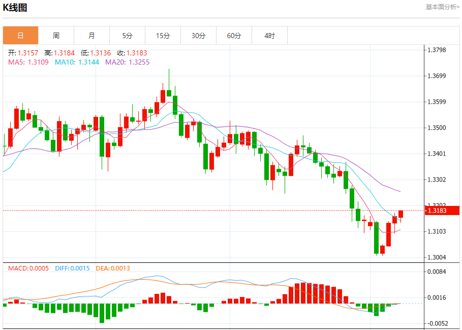 周一盘中,英镑/美元报1.3181,涨幅0.15%。 今日分析:在1.3115之上,看涨,目标价位为1.3200,然后为1.3220。 技术点评:RI技术指标呈现进一步上升趋势。 支撑位:1.31151.30901.3070 阻力位:1.32401.32201.3200 (亚汇网编辑:冰凡)