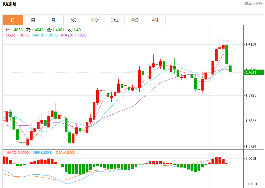 今日周一,澳元兑美元报0.6535,涨幅0.62%;美元兑加元报1.4014,跌幅0.23%;美元兑瑞郎报0.8054,涨幅0.01%。 澳元兑美元汇率分析 技术点评:RI技术指标向上运行。 阻力位:0.65950.65750.6555 支撑位:0.65050.64750.6455 美元兑加元汇率分析