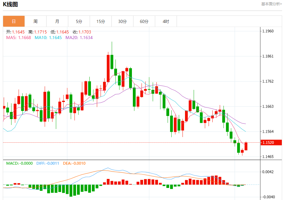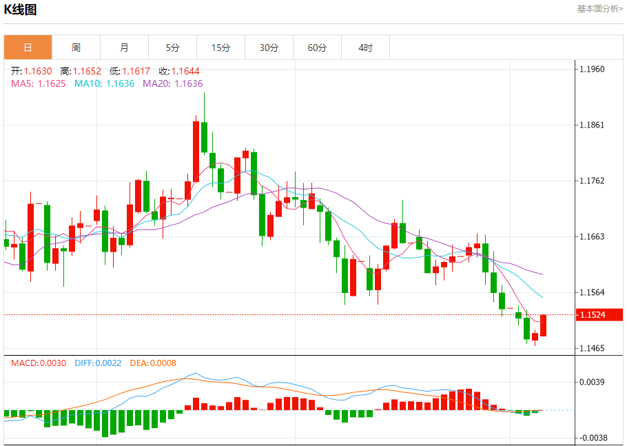 今日周四,截止目前欧元兑美元报1.1522,上涨0.25%。 欧元基本面行情分析 欧洲央行最新消息为:当地时间2025年10月30日,欧洲央行在货币政策会议上宣布,将存款机制利率维持在2.00%,主要再融资利率维持在2.15%,边际贷款利率维持在2.40%,这是该行连续第三次维持利率不变。