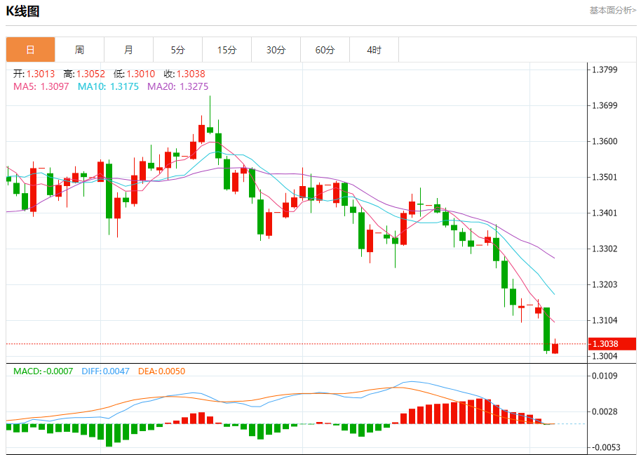 周三盘中,英镑/美元报1.3044,涨幅0.18%。 今日分析:在1.3070之下,看跌,目标价位为1.2980,然后为1.2950。 技术点评:超短线(当日内)技术指标运行趋势复杂,应谨慎操作。 支撑位:1.29801.29501.2920 阻力位:1.31401.31101.3070 (亚汇网编