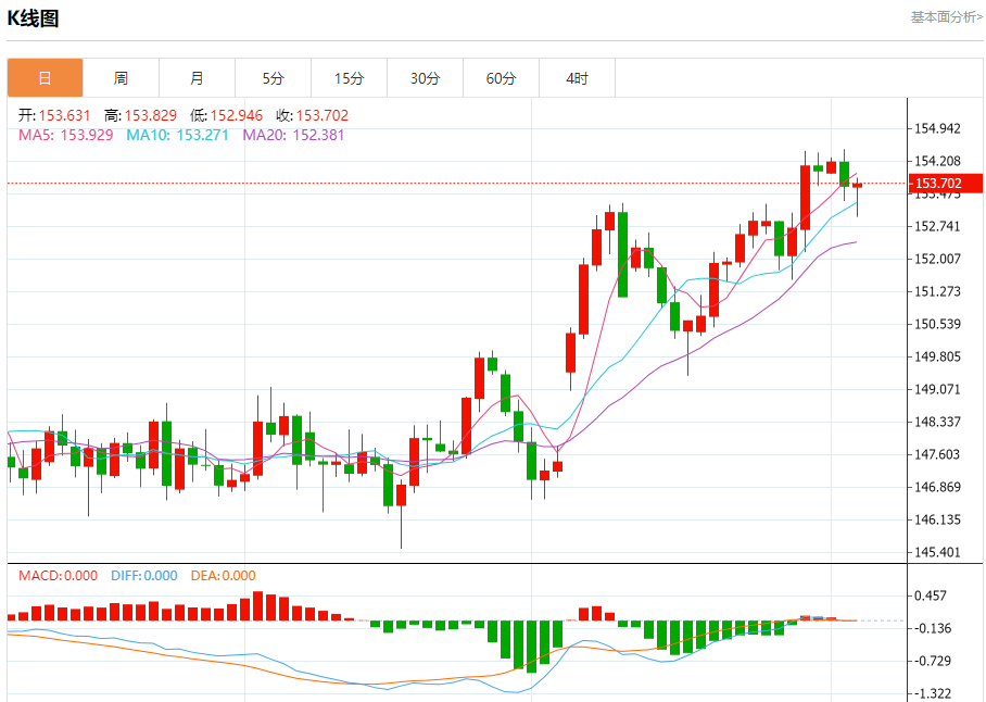周三纽盘,美元兑日元交投于153.730,涨幅为0.03%。 日元基本面分析 根据日本央行11月5日发布的货币政策会议纪要,货币政策委员会成员一致认为,鉴于实际利率处于显著低位,如果经济活动和物价预测得以实现,那么日本央行将根据经济活动和物价的改善情况,原则上继续上调政策利率。