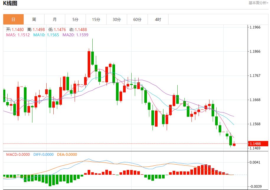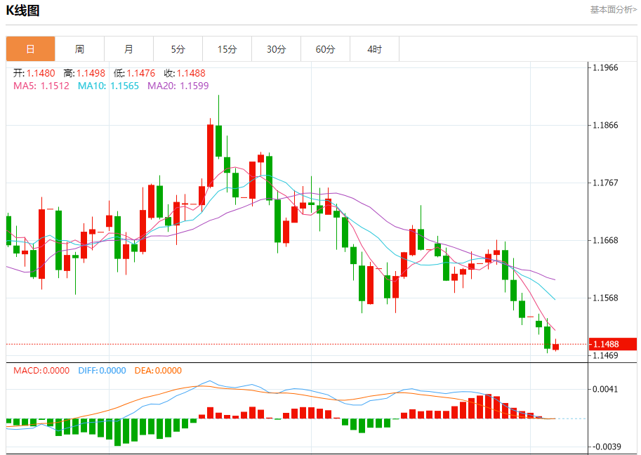 美元 美元指数周二连续第五个交易日走强,涨幅约0.15%,一度达到100.03的近三个月高点。从技术面看,美元指数短期支撑位在98.09的日内低点附近。美元指数当前已收复部分年内跌幅,年初至今跌幅收窄至7.9%,较9月时的11%显著改善。 欧元 欧元兑美元交投于1.1508附近,跌幅0.08
