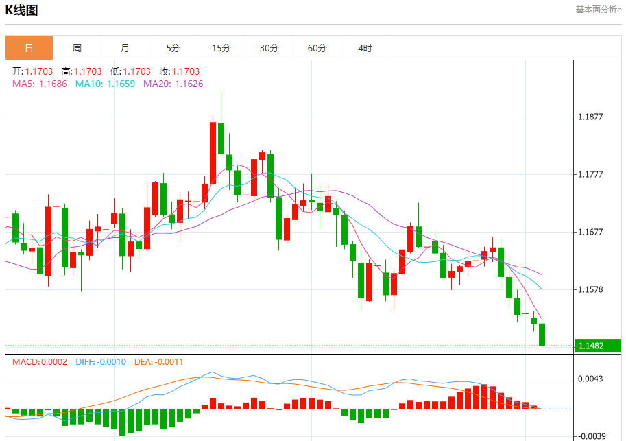 今日周二,截止目前欧元兑美元报1.1483,下跌0.31%。 欧元基本面行情分析 欧洲央行管理委员会成员OlliRh称,欧洲央行必须对通胀前景面临的上行和下行风险保持所有选项开放。 此外,他确认明年将竞选央行副行长一职。现任芬兰央行行长的Rh周二表示,虽然不确定性有所缓解