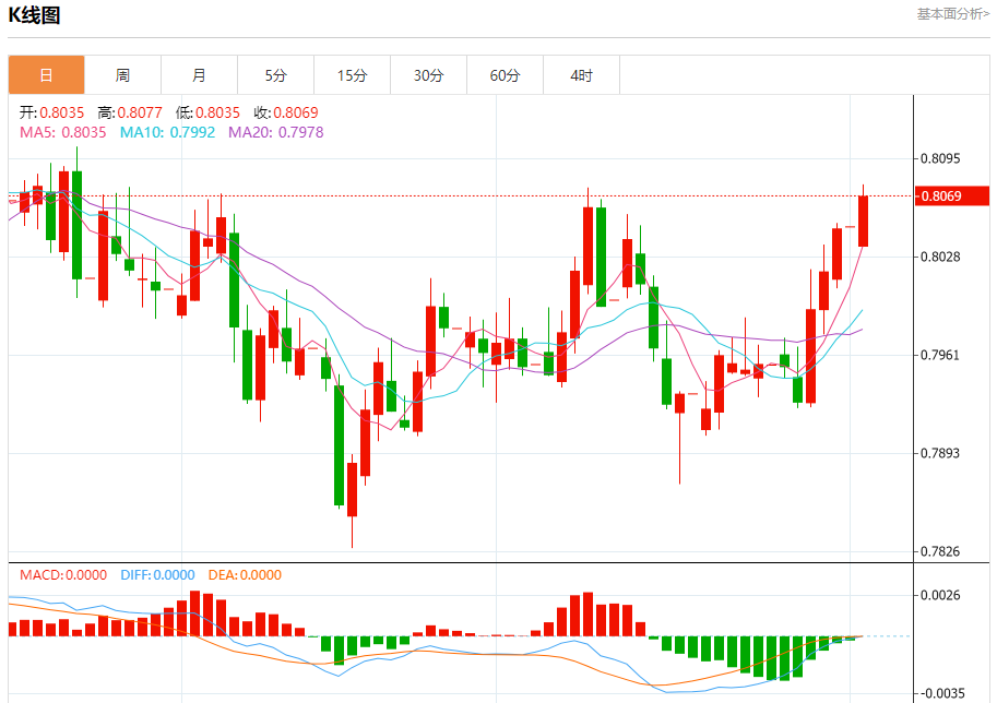 周一纽盘,瑞郎兑美元交投于0.8075,涨幅为0.34%。 瑞郎基本面分析 瑞士通胀意外放缓至接近于零的水平,从而令该国央行抑制本币强势、提振物价增长的压力加剧。 该国统计局周一公布的数据显示,10月,消费者价格指数同比上涨0.1%,较上月的0.2%有所放缓。根据调查的预估中值