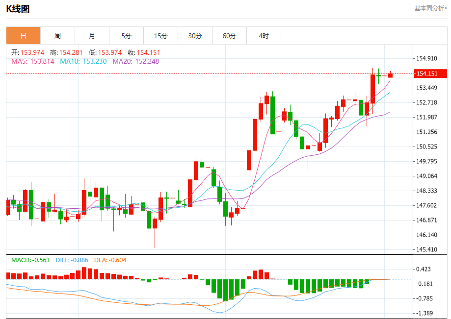 今日周一,截止目前美元兑日元报154.165,上涨0.06%。 日元基本面行情分析 投资者对日本央行下一次加息时机保持不确定态度,尤其是在新任首相高市早苗预计将推出积极财政支出的背景下。 这一政策预期掩盖了此前来自东京的强劲通胀数据,削弱了日元的支撑作用。与此同时,全球