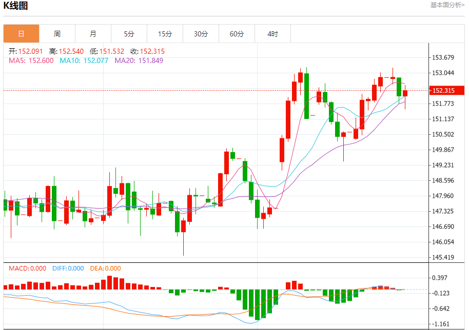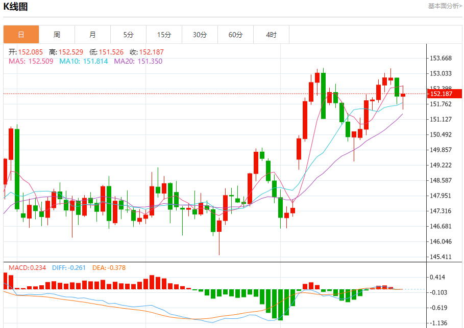 今日周三,截止目前美元兑日元报152.339,上涨0.15%。 日元基本面行情分析 安联全球的分析师GrgorHirt表示,预计日本央行本周将把政策利率维持在0.5%不变,但植田和男可能会努力避免给人留下央行将无限期维持利率不变的印象。 他在一篇评论文章中说,虽然日本央行似乎正在准