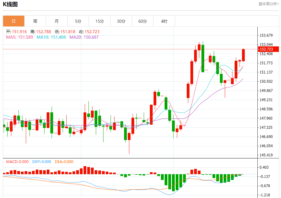 今日周四,截止目前美元兑日元报152.728,上涨0.50%。 日元基本面行情分析 美国彭博社周四(10月23日)报道称,该媒体进行的最新调查显示,日本央行观察人士推迟了对下次加息时间的预测,与上个月相比发生了显著变化,目前只有少数人预计日本央行会在下周采取行动。 彭博调查