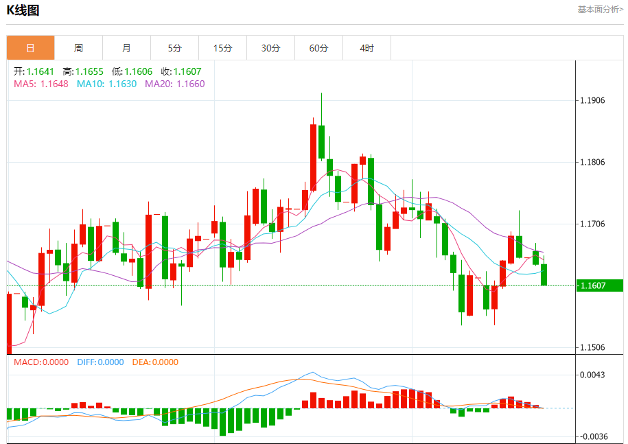 周二晚间,美元指数现报98.912,涨幅0.30%,现对美元兑欧元、英镑、日元主要货币对分析表述如下: 欧元/美元 汇价高见1.1655,低见1.1606。上一交易日,汇价收于1.1641。 基本面:受欧元区疲软增长态势及财政担忧拖累,欧元近期升值空间仍受制约。若市场风险偏好保持坚挺,且
