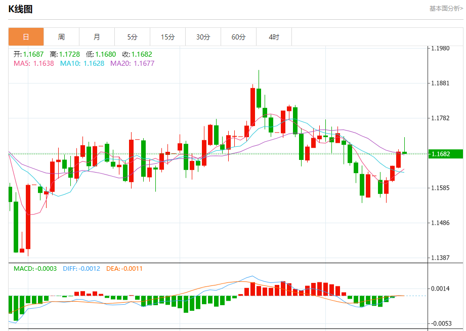 今日周五,截止目前欧元兑美元报1.1686,下跌0.01%。 欧元基本面行情分析 欧洲央行管理委员会成员Joachiagl表示,他对当前的货币政策设定感到满意,除非新增数据显示前景发生变化,否则没有理由作出调整。 这位德国央行行长周四表示,他“相当有信心”欧洲央行已接近2%的