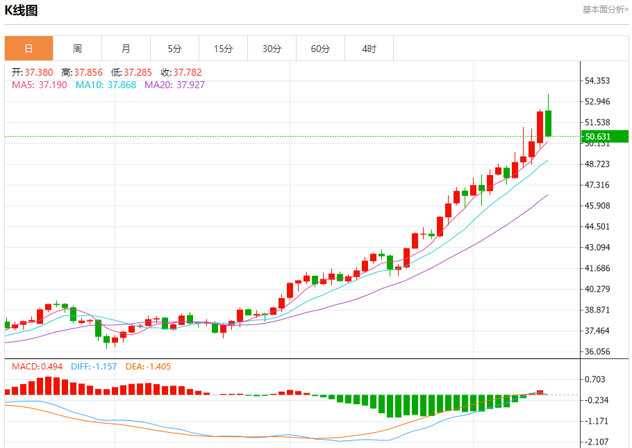 周二盘中,现货白银报50.633,跌幅3.13%。 今日分析:在50.80之上,看涨,目标价位为52.95,然后为53.60。 技术点评:50.80附近形成了一个支撑的底部,将带来走势短期内的稳定。 支撑位:50.8050.2040.65 阻力位:54.3053.6052.95 (亚汇网编辑: