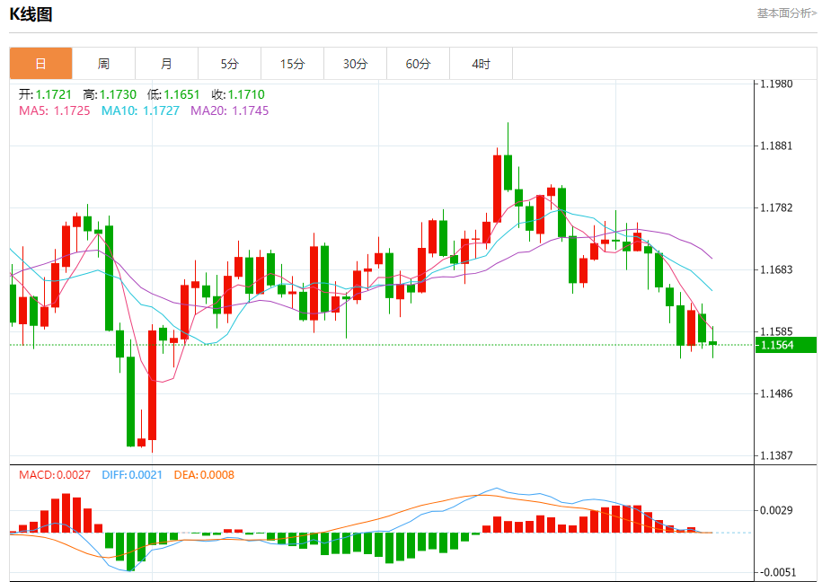 周二盘中,欧元/美元报1.1563,跌幅0.05%。 今日分析:在1.1590之下,看跌,目标价位为1.1540,然后为1.1515。 技术点评:RI技术指标看跌,有进一步向下趋势。 支撑位:1.15401.15151.1500 阻力位:1.16301.16151.1590 (亚汇网编辑:冰凡)
