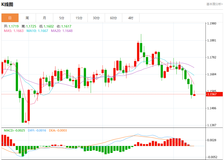 周四晚间,美元指数现报98.921,涨幅0.07%,现对美元兑欧元、英镑、日元主要货币对分析表述如下: 欧元/美元 汇价高见1.1648,低见1.1602。上一交易日,汇价收于1.1626。 基本面:法国的政治动荡不太可能导致欧元持续疲软。如果在法国总理辞职后在年底前举行议会选举,欧元可