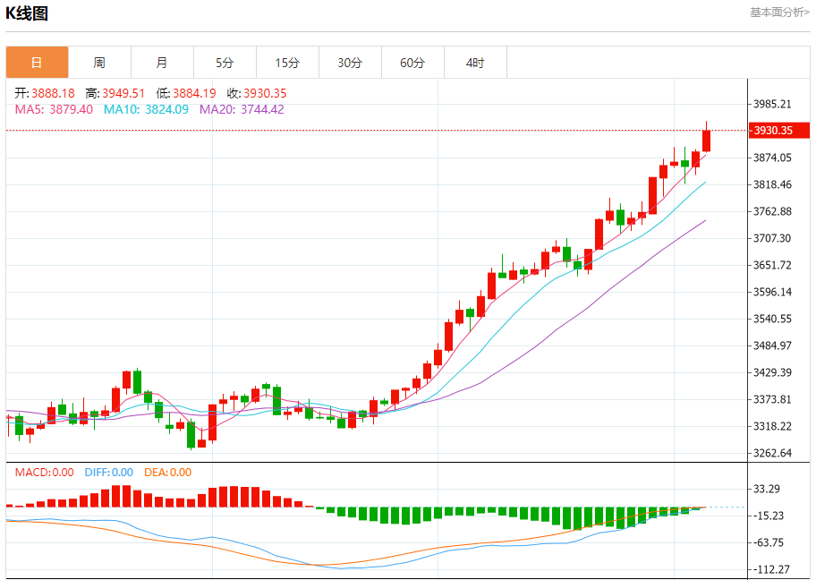 周一盘中,现货黄金报3928.76,涨幅1.09%。 今日分析:在3896.00之上,看涨,目标价位为3972.00,然后为4000.00。 技术点评:RI技术指标呈现继续上升趋势。 支撑位:3896.003862.003840.00 阻力位:4020.004000.003972.00 (亚汇网编辑:冰凡)
