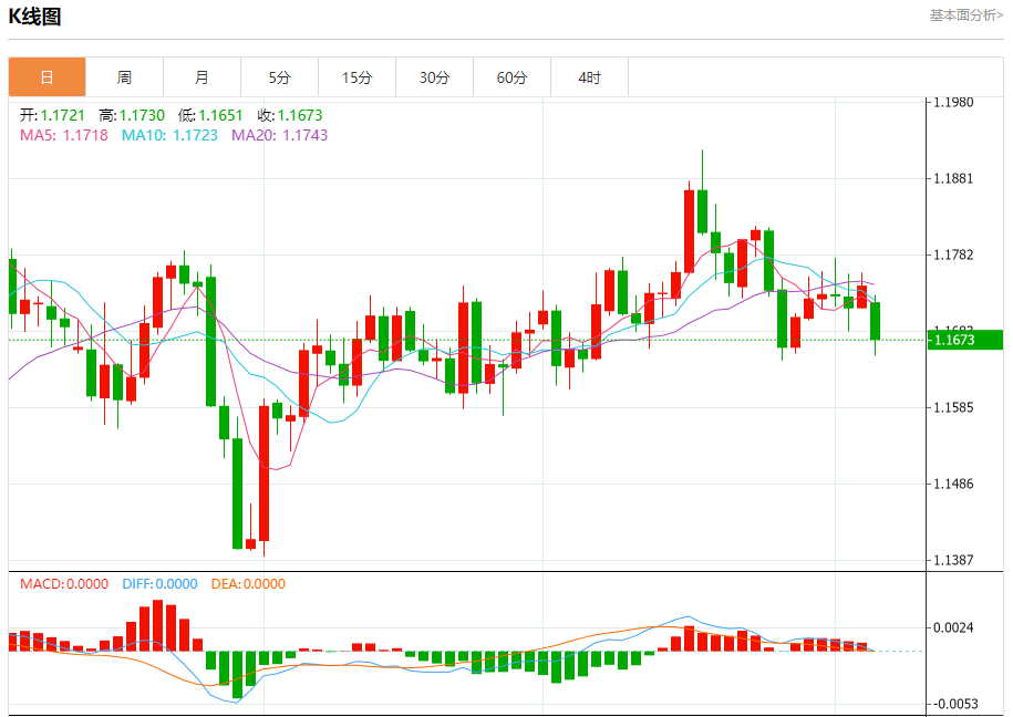周一晚间,美元指数现报98.334,涨幅0.65%,现对美元兑欧元、英镑、日元主要货币对分析表述如下: 欧元/美元 汇价高见1.1731,低见1.1651。上一交易日,汇价收于1.1739。 日内建议:可以在1.1785---1.1700的区间下限买入,有效破位40个点止损,目标在区间的上限。