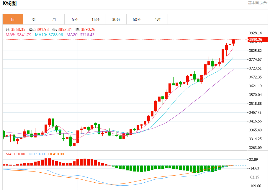 黄金 行情表现:截至10月2日21时55分,伦敦金现货价格为3877.26美元/盎司,上涨14.01美元,涨幅0.36%,最高达到3896.1美元/盎司,最低为3852.75美元/盎司;纽约金期货价格为3910.5美元/盎司,上涨13美元,涨幅0.33%,最高3923.3美元/盎司,最低3877美元/盎司。上海黄金现货黄金T+D价格为871.5元/克,上