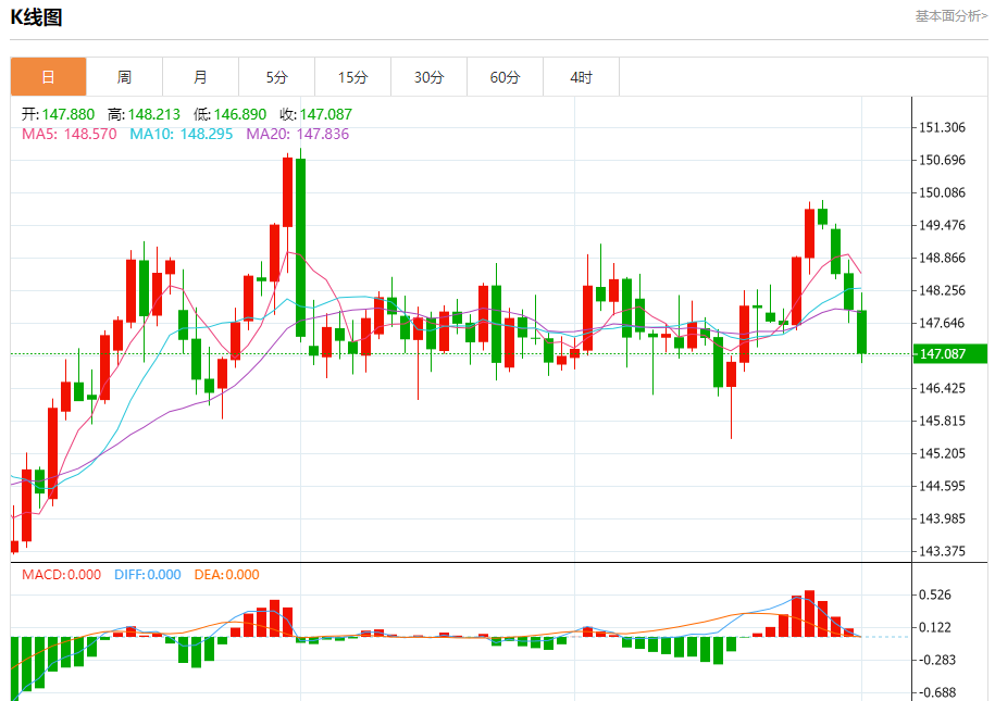 今日周三,截止目前美元兑日元报147.041,下跌0.61%。 日元基本面行情分析 日本最新季度短观调查显示,得益于陶瓷与造船业状况改善,第三季度大型制造业信心指数从13升至14。大型非制造业指数维持在34不变,正值代表认为经营环境“良好”的企业多于认为“不佳”的企业。 全行